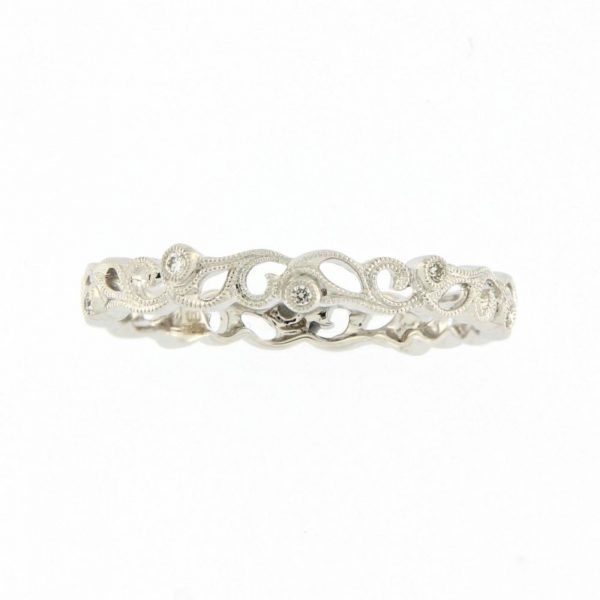 Élégante  dentelle d’une largeur de 3 millimètres, sublimée par 9 diamants (0.06 carat).