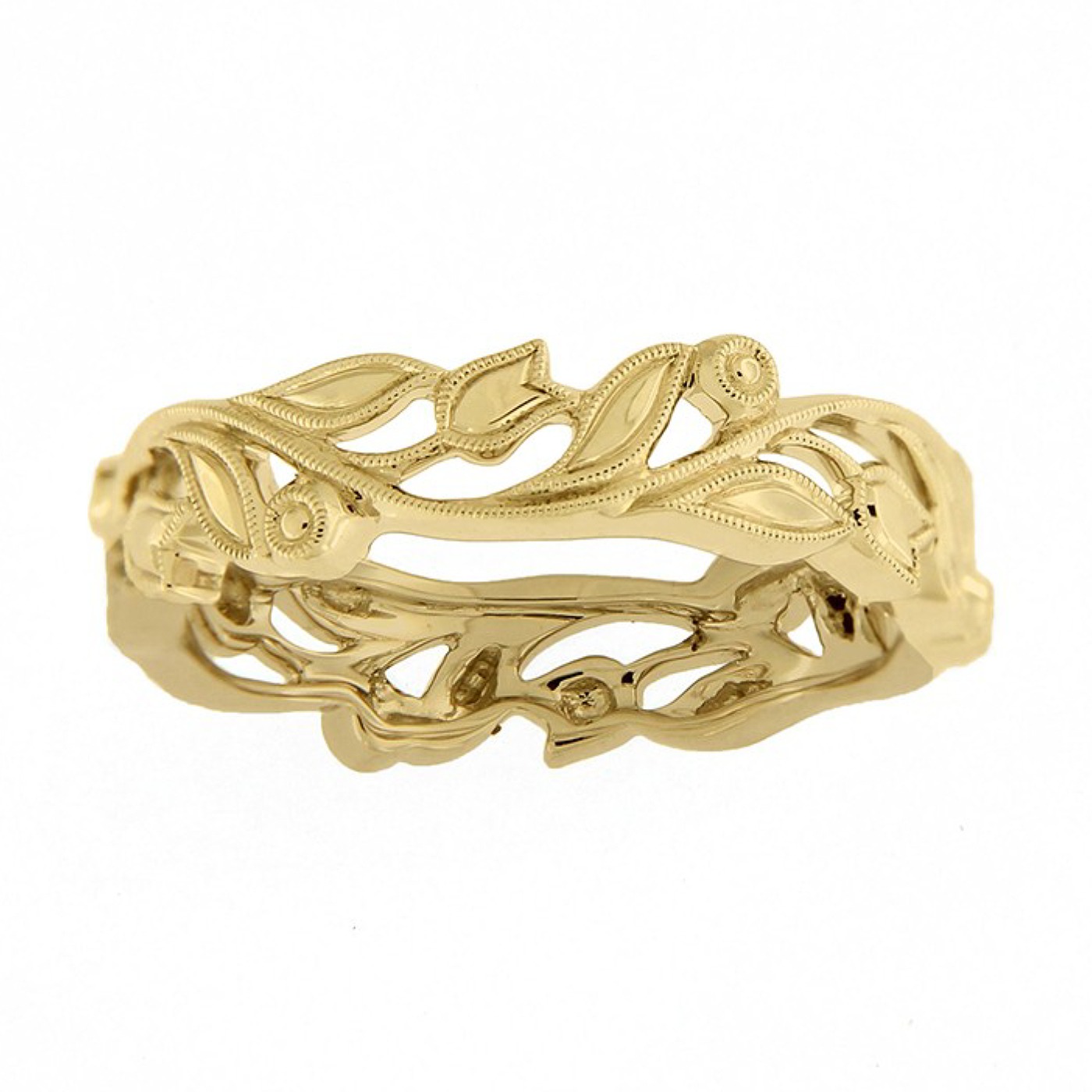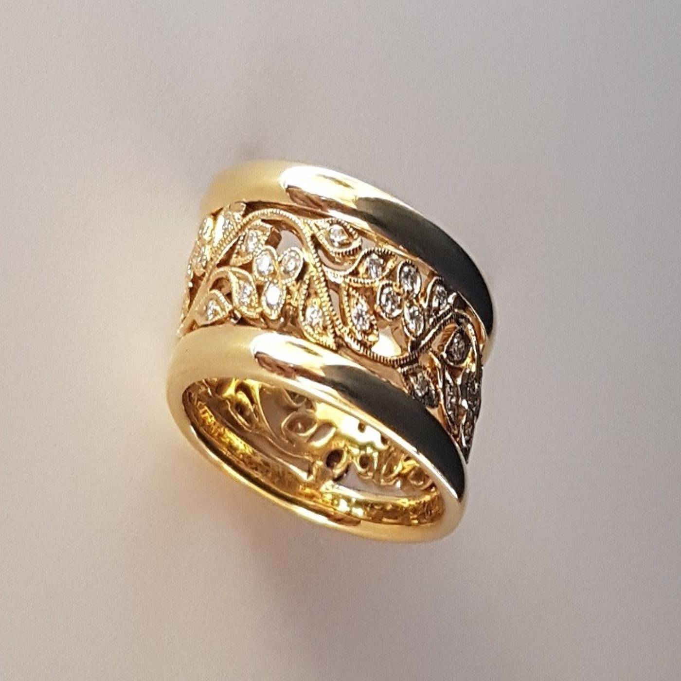 Élégante bague dentelle tout or d’une largeur de 4.5 millimètres.