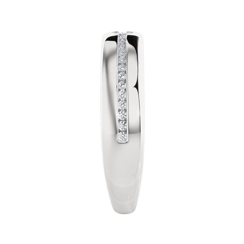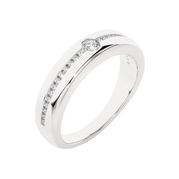 Bague alliance en diamants, avec un diamant central légèrement plus imposant, mis en valeur par une ligne de pierres serties directement dans la masse.