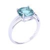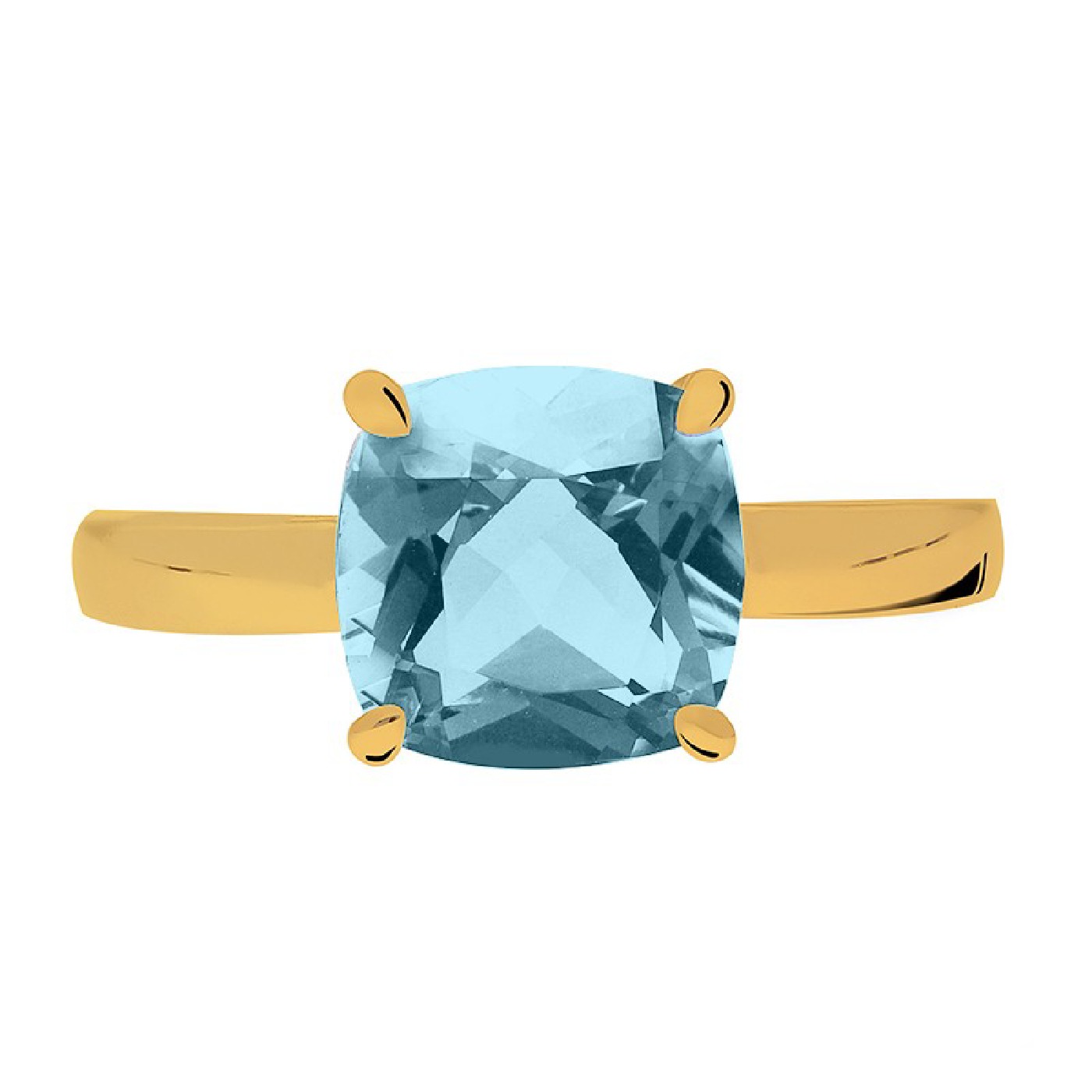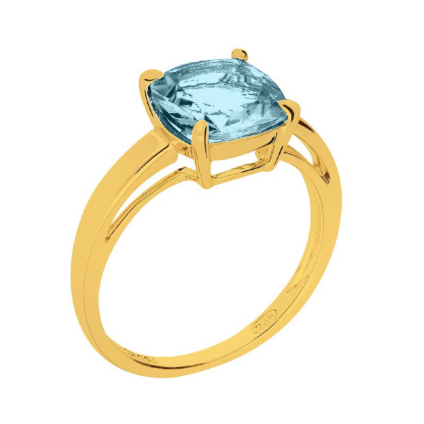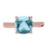 Un corps moderne et délicat rehaussé d’une pierre fine Topaze bleue traitée 8*8 millimètres (1.77 carats) taille coussin sur un serti à griffe.