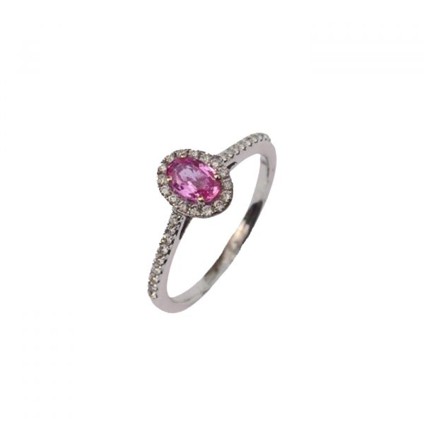 Magnifique saphir rose ovale (0.70 carat) serti 4 griffes.