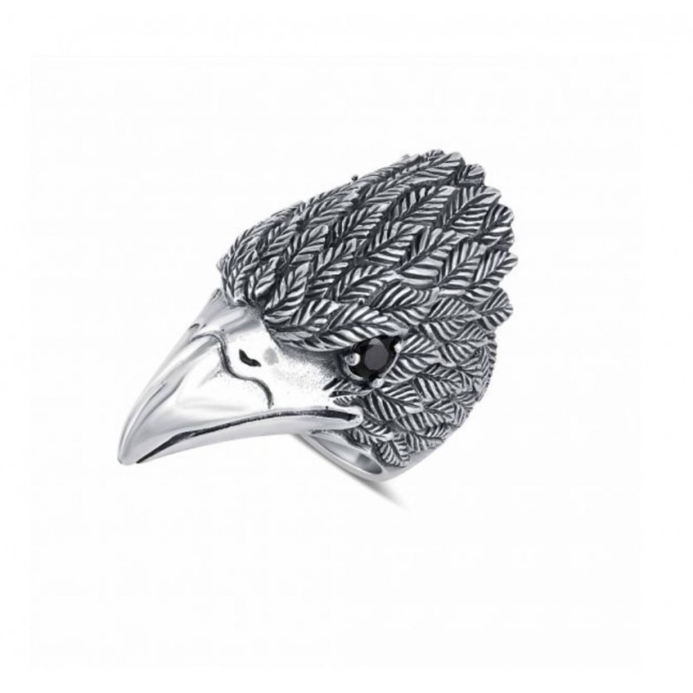 Bague Tête de d’aigle corps de bague poli miroir, motif argent oxydé.