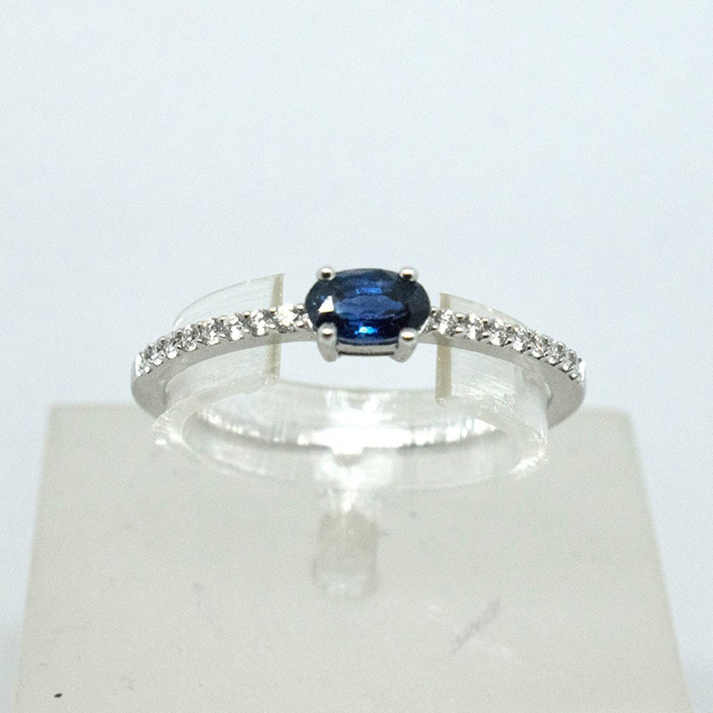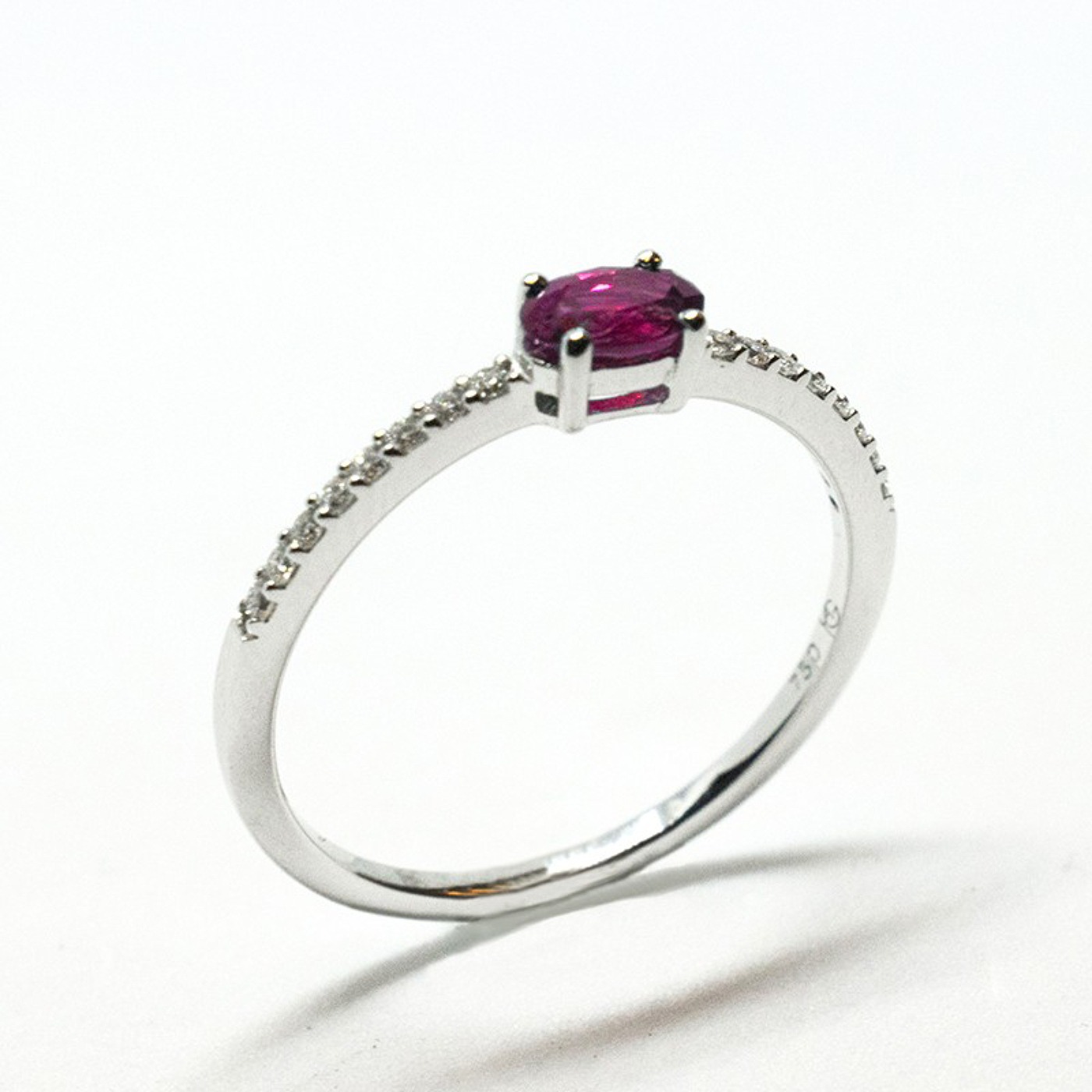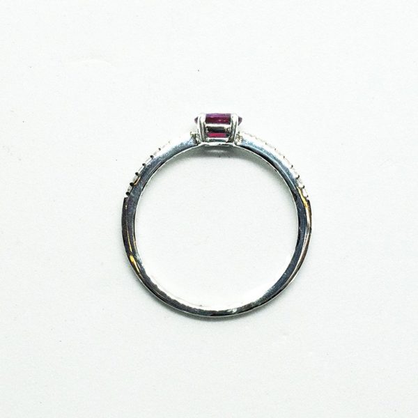 Ligne diamants 0,09 carat sur  un délicat anneau en or blanc 750/1000.