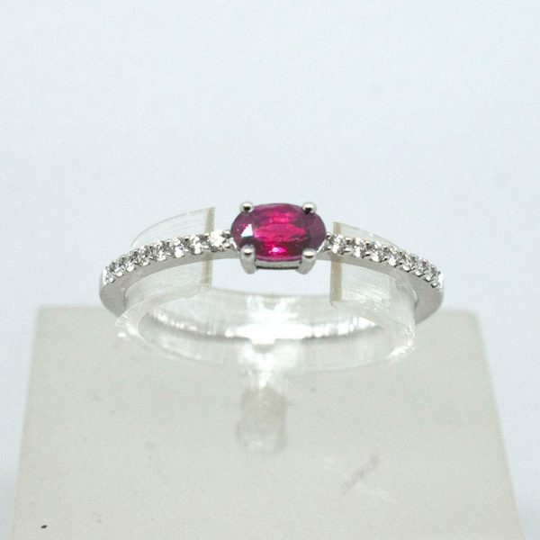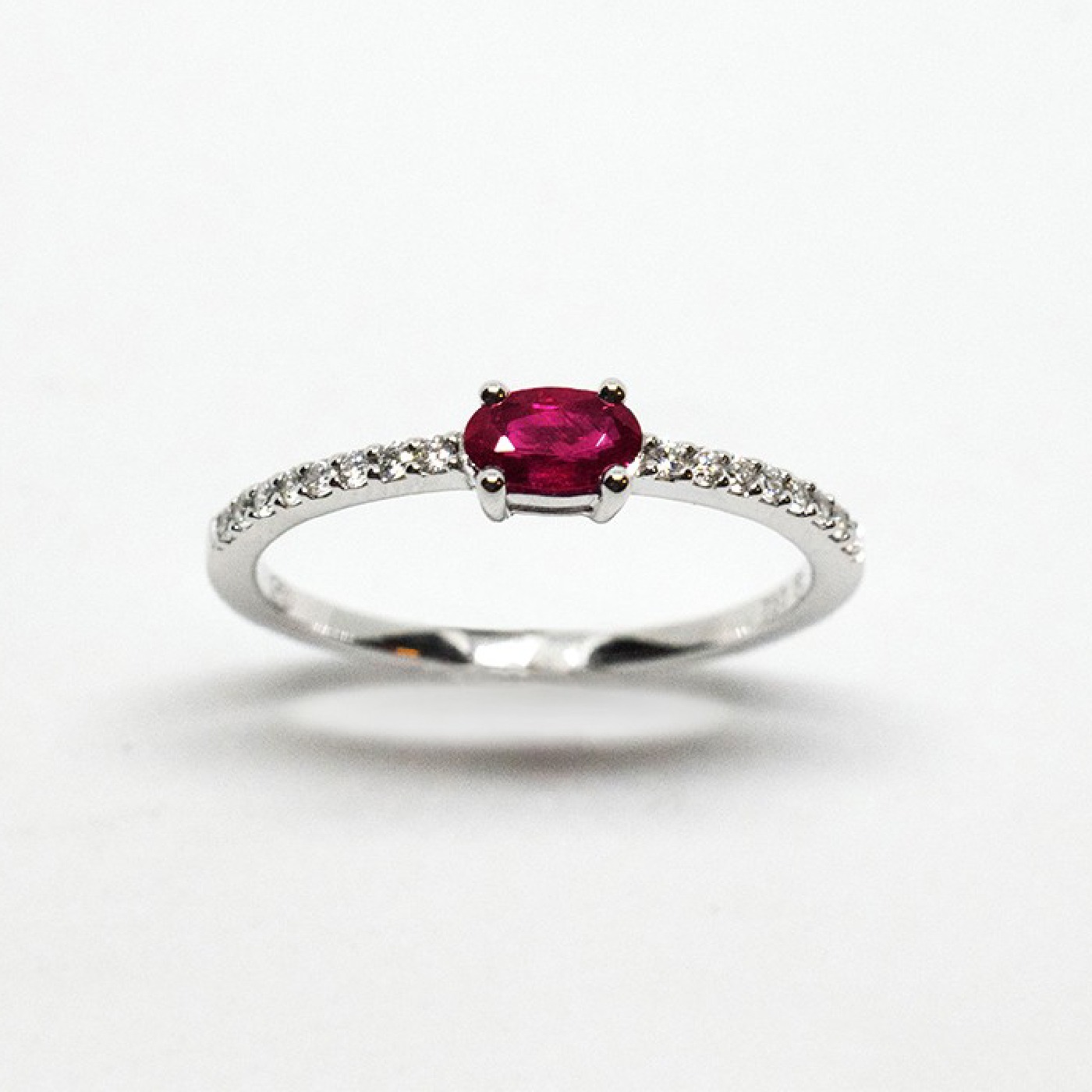 Pierre de centre : Rubis, Saphir ou Émeraude d’environ 0,30 carat serti quatre griffes.