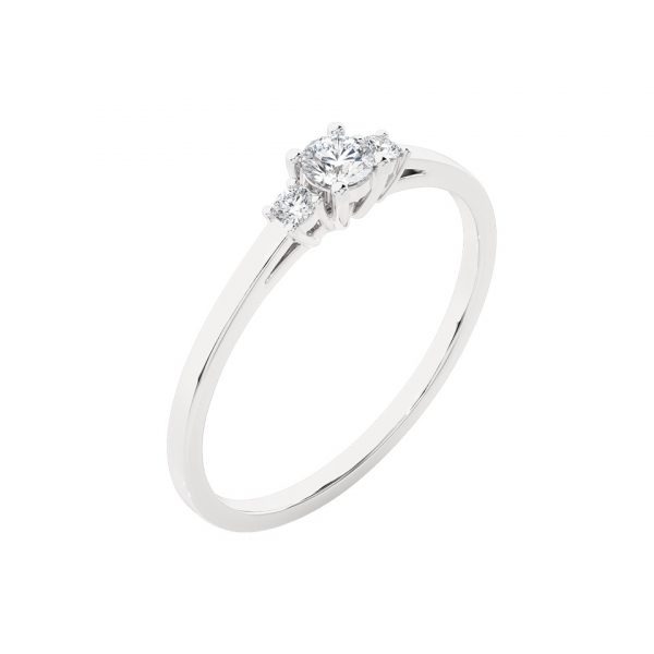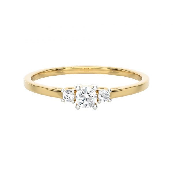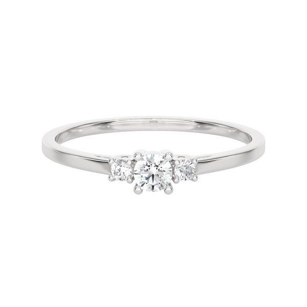 Bague solitaire diamant, au design minimaliste et élégant, composée de trois diamants délicats.