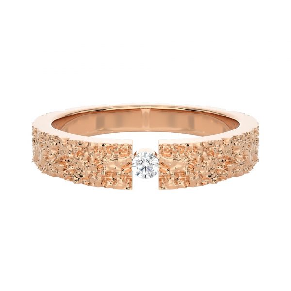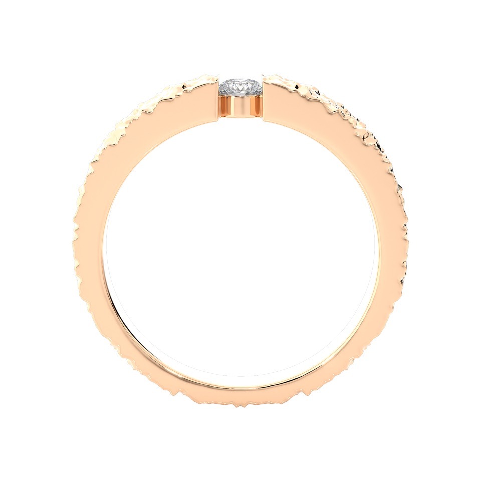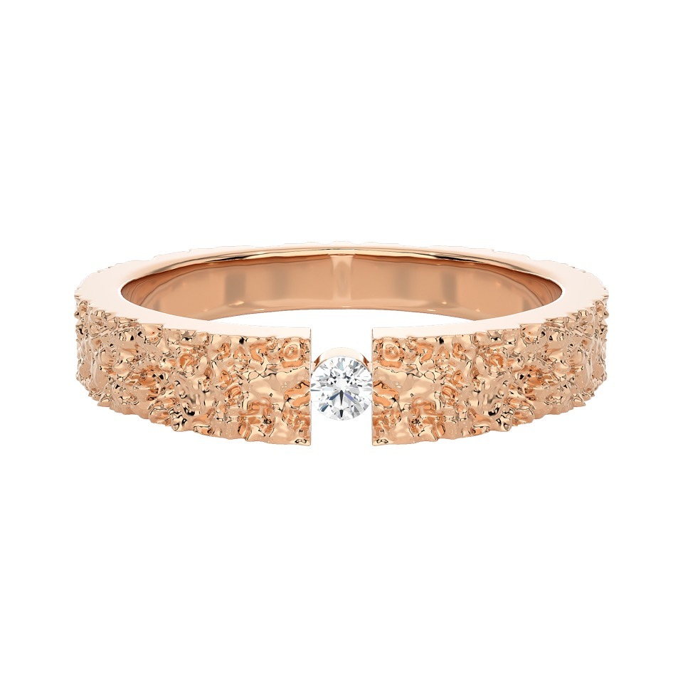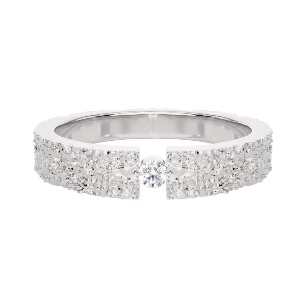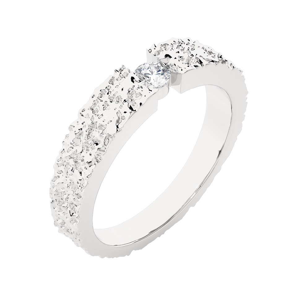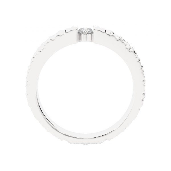 Le diamant, subtilement suspendu, capte la lumière et attire le regard, parfaitement mis en valeur dans ce design audacieux.
