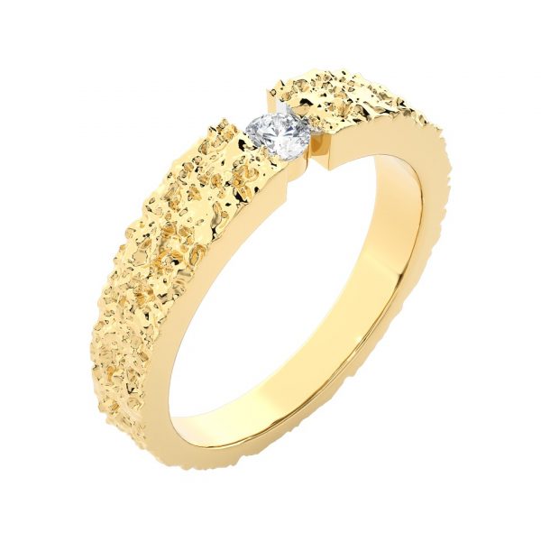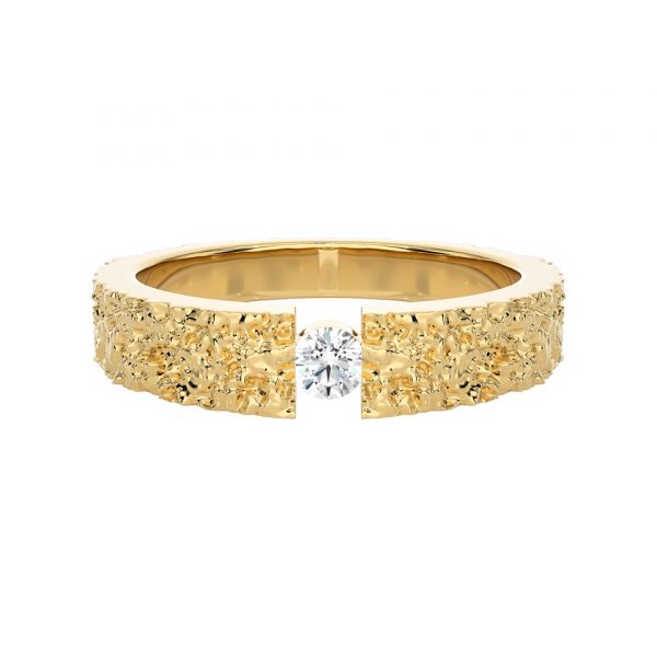 L’or est ici travaillé et texturé pour lui donner du relief et une sensation de matière brute, assumée et contemporaine.