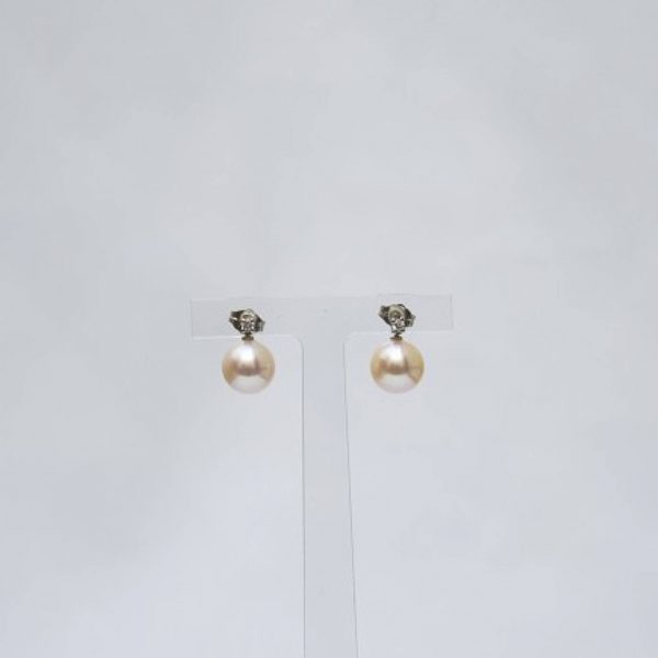 Duo de diamants G/VS 0.10 CT  carat et perles de culture eau douce blanche diamètre 9,5/10