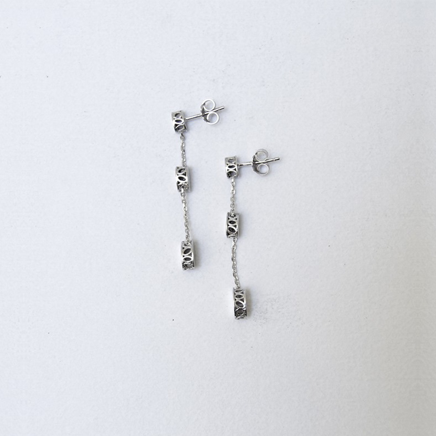 Ornées de 3 motifs plein, réversible avec un profil ajouré sur une chaîne souple maille forçat d’une longueur de 4 cm.