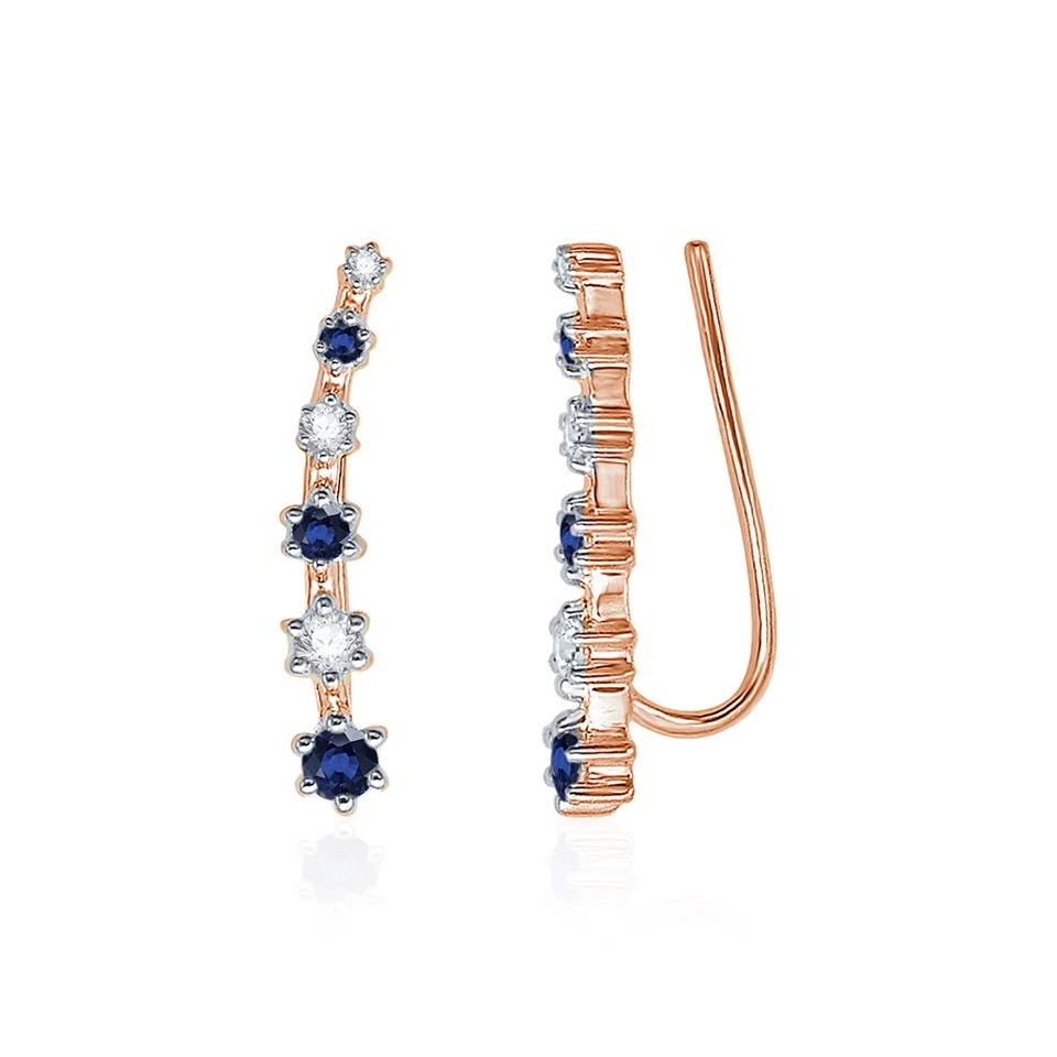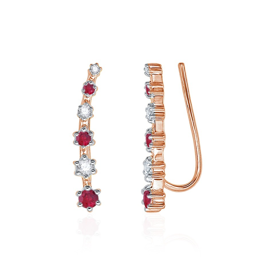 Boucle d’oreille délicate, en mouvement dégradé, sertie de rubis, saphir ou émeraude.