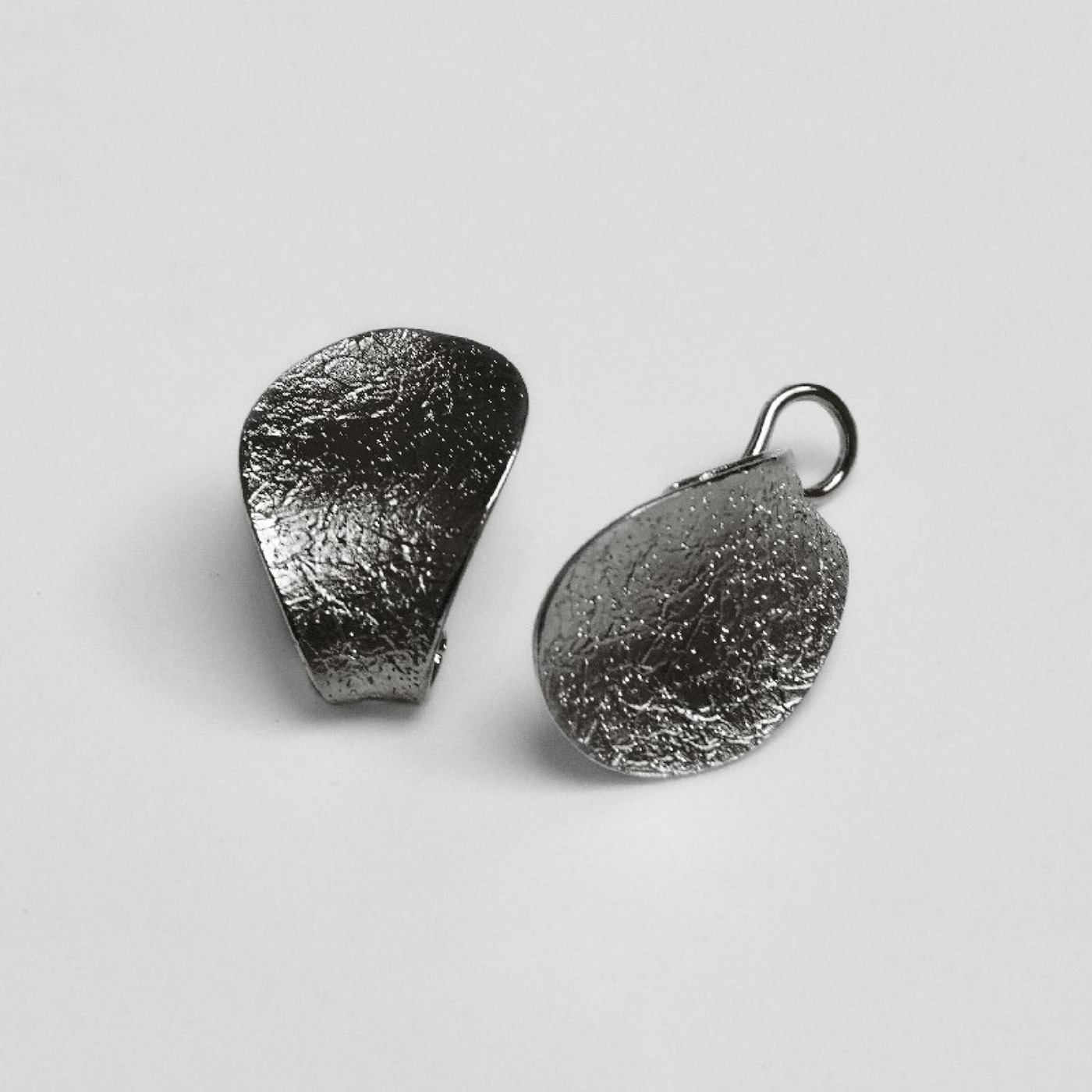 .Boucles d’oreilles « Pétale » sobre et classique en argent 925/1000, argent doré ou argent rhodié noir.