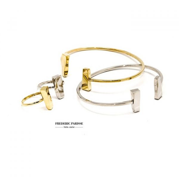 Bracelet rigide ouvert et flexible avec fil carré en or blanc ou en or jaune 750/1000.