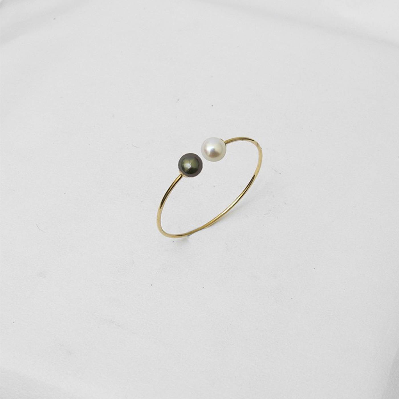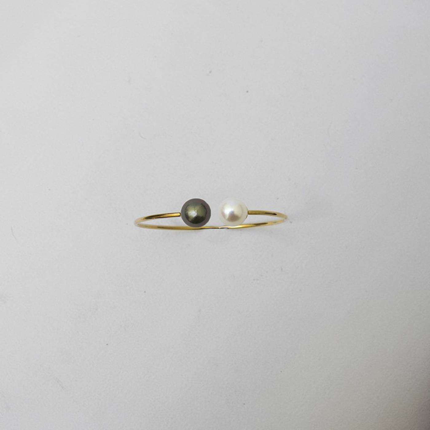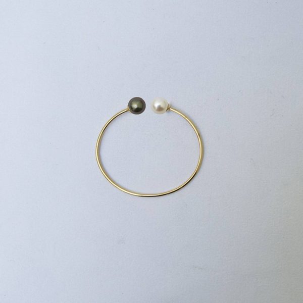 Bracelet jonc fil rond massif avec son duo de perles de culture