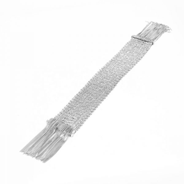 Sa souplesse épouse votre poignet, son fermoir pompe incorporé dans la maille se termine par une coulée chaîne « franges ».