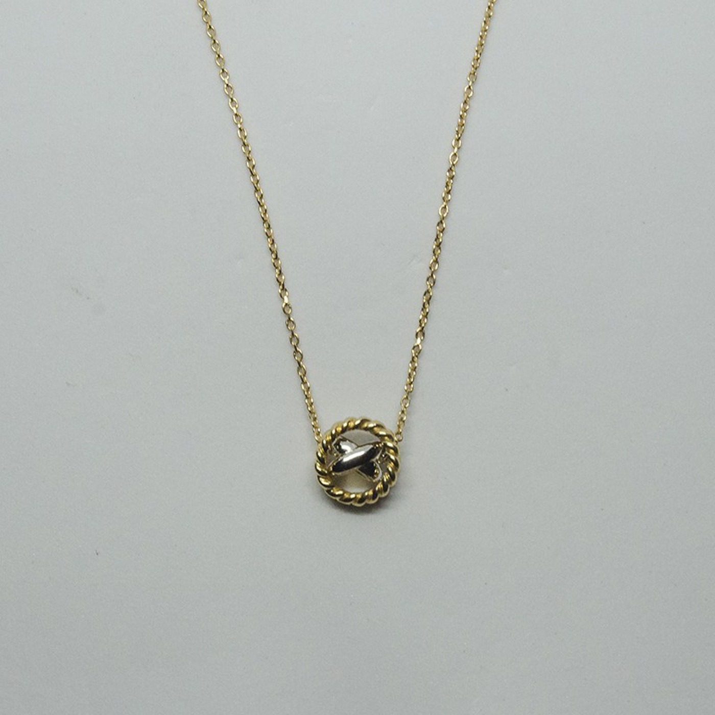 Collier en or blanc 750/1000 avec son motif classique et une corde en or jaune 750/1000.