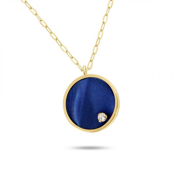 Collier en or avec pendentif médaille, orné d’une résine colorée au reflet nacré, à choisir selon vos envies.