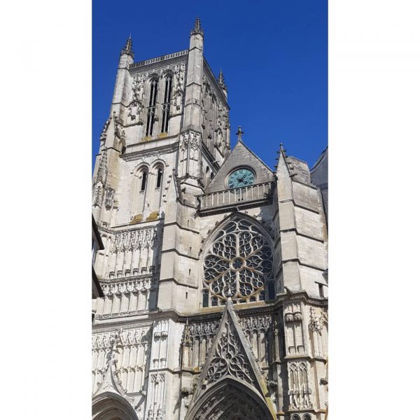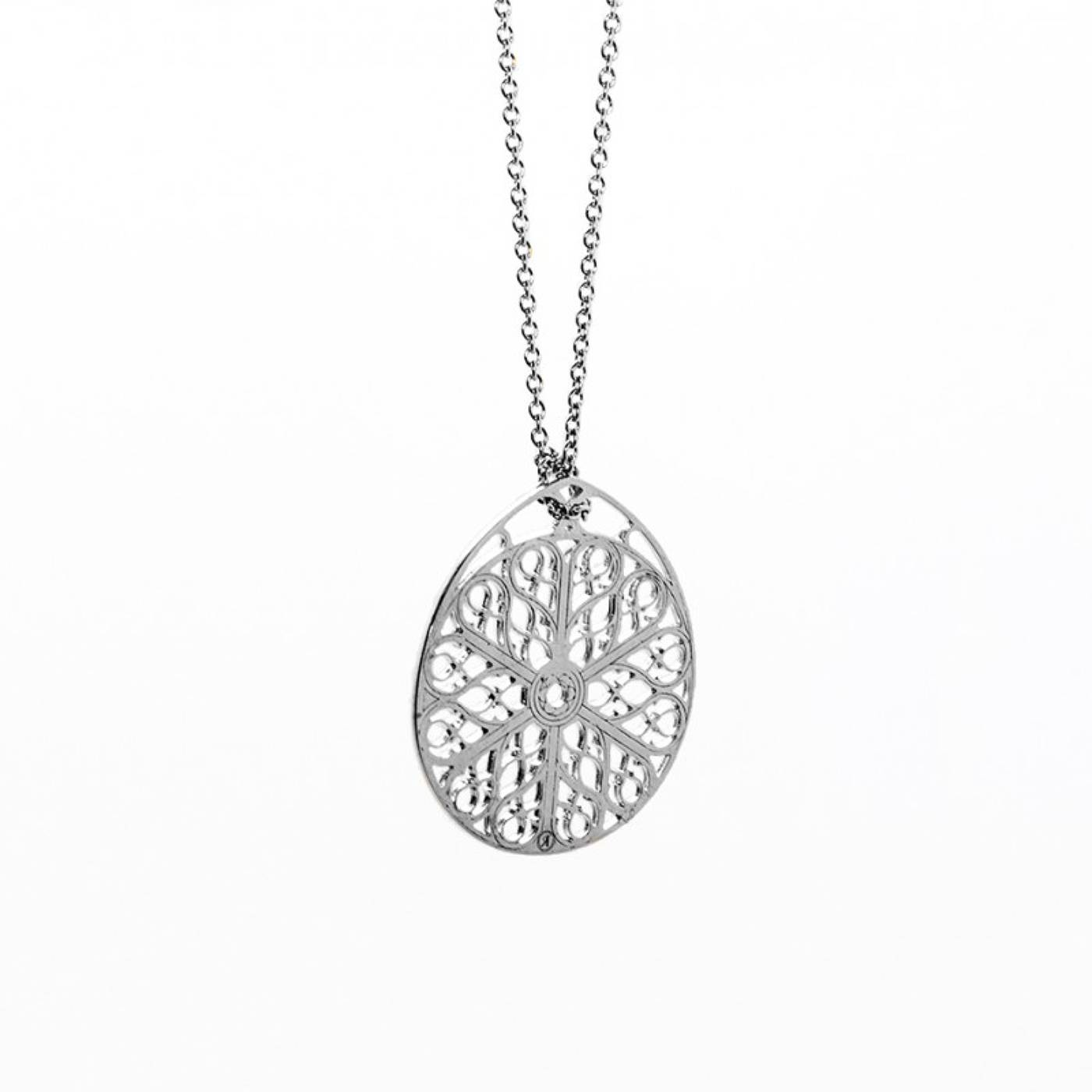 Pendentif délicat représentant la réplique exacte du vitrail de la cathédrale de Meaux avec sa dentelle repercée et son « ogive » ou passe une chaîne ou un petit ruban de soie.