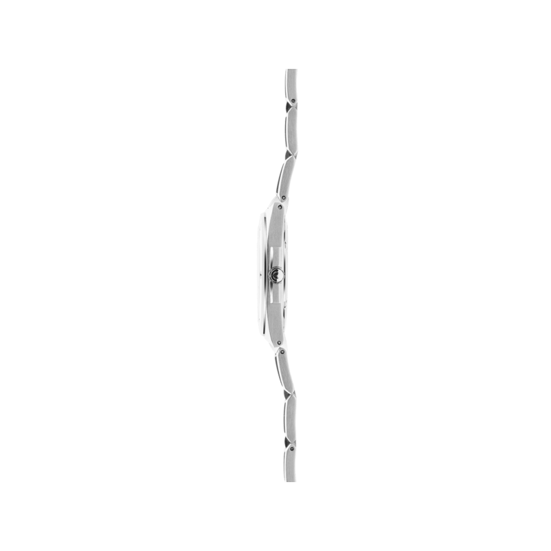 Le bracelet en acier inoxydable fait corps avec son boitier apportant une touche de raffinement.