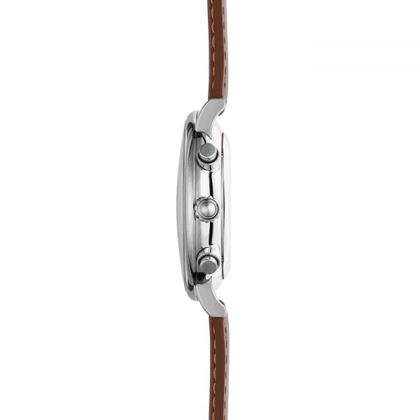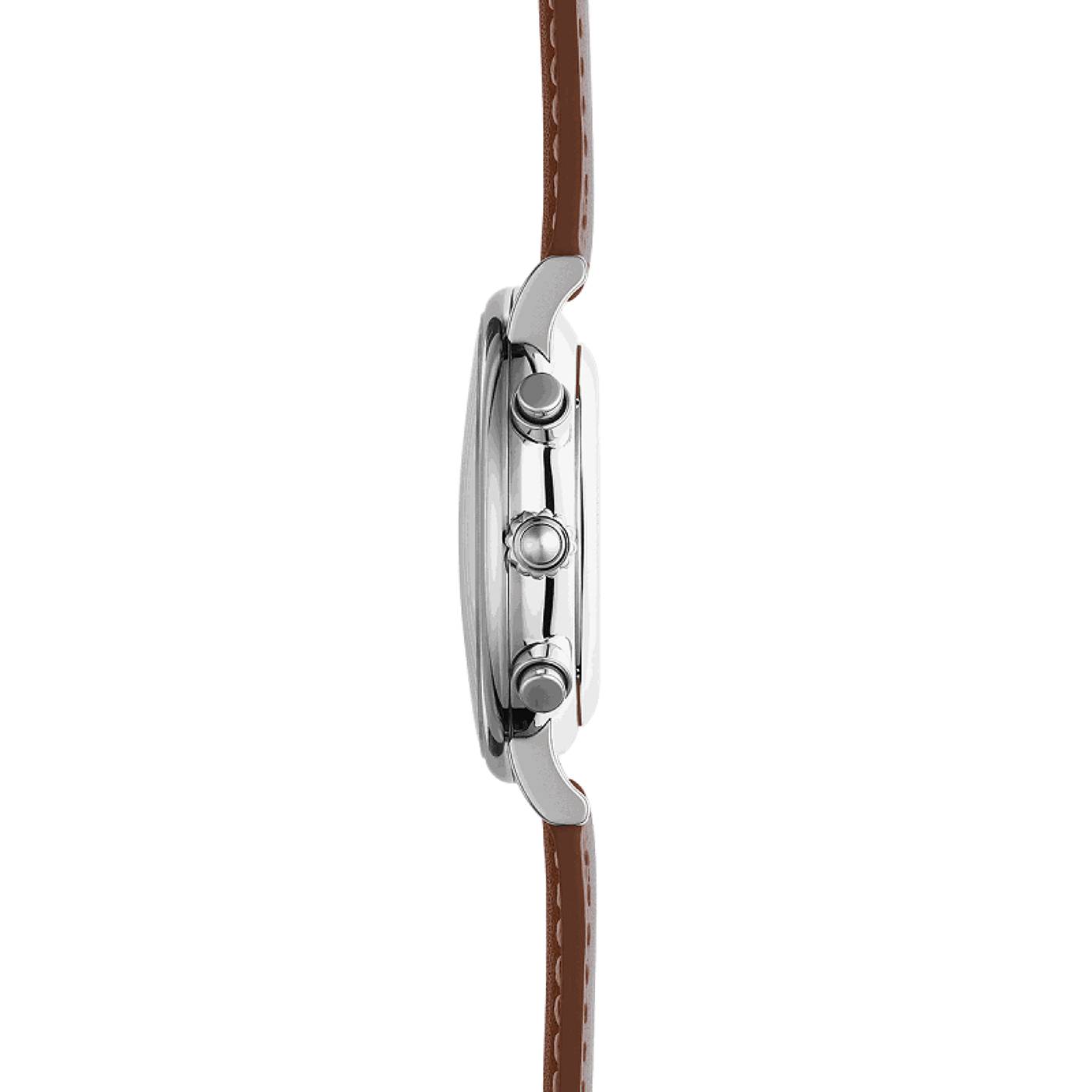 Élégamment habillé d’un bracelet en cuir gold logé dans un boitier en acier poli, ce garde-temps est un mélange de modernité et d’élégance.