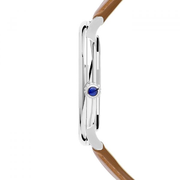 Finalisée d’une couronne boule cannelée sertie d’un cabochon bleu et habillé d’un bracelet en cuir gold, l’Inspiration est une montre au charme intemporel. dessinée et assemblée en France .