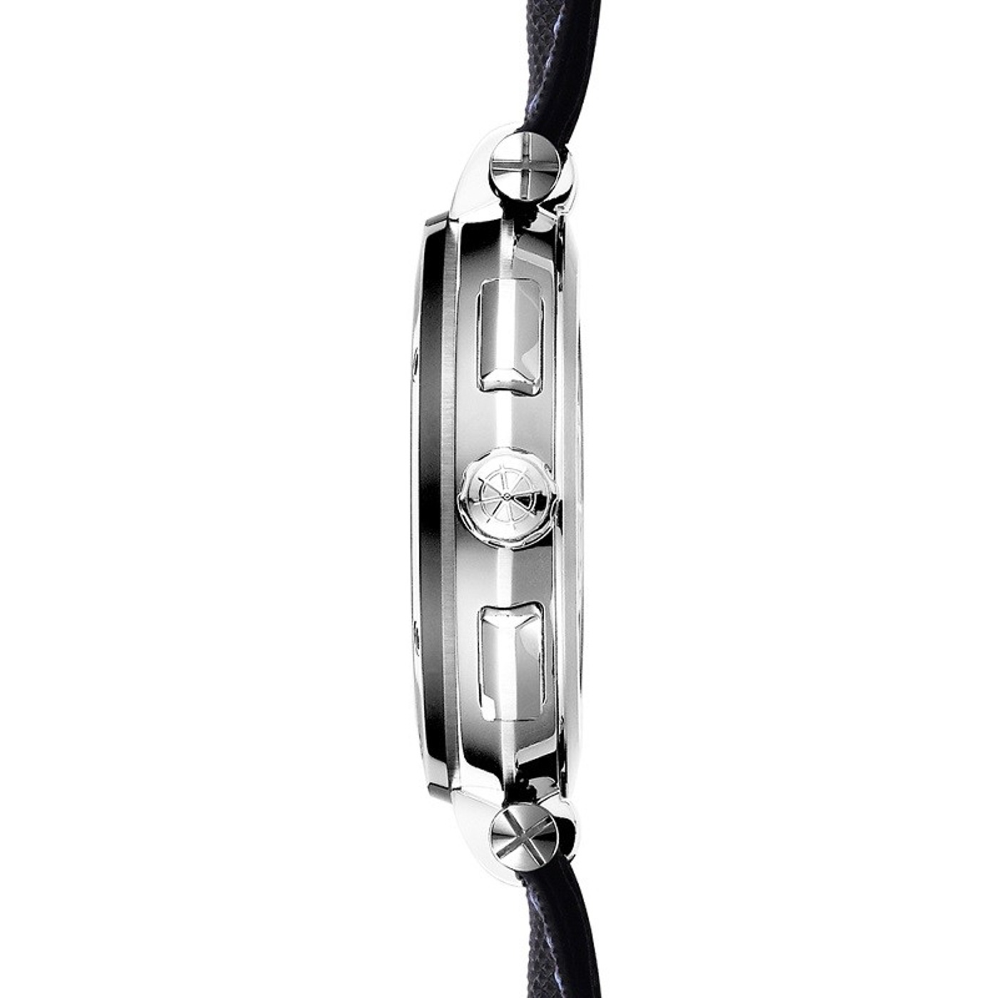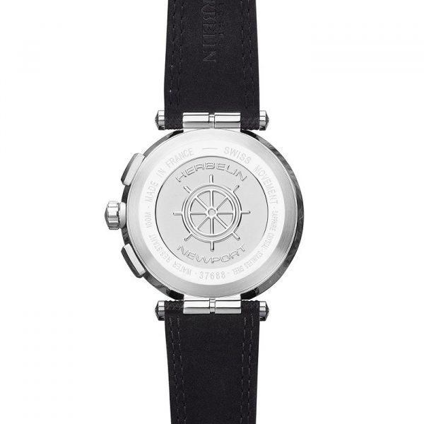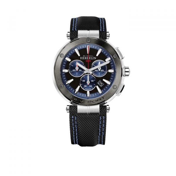 Esprit chic et architecture racée pour cette nouvelle génération Newport, modèle emblématique Michel HERBELIN. Cette montre moderne se distingue par la fluidité de ses lignes et son style épuré. Son cadran dégradé passant subtilement du noir profond au bleu intense en son centre s’accorde parfaitement avec les trois compteurs de ce chronographe. Son bracelet en cuir technique « techno pointe » accueille une double couture.  Le relief de son bracelet accroche à merveille la lumière et s’accorde subtilement au gris anthracite de la lunette.