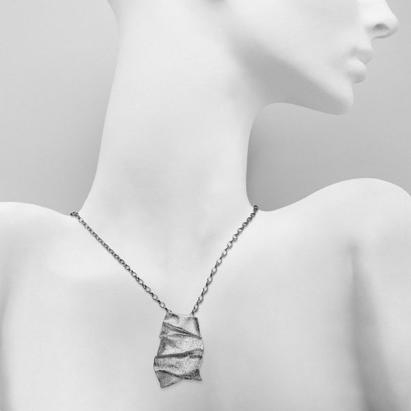 Pendentif forme ruban ondulé satiné piqueté finition sculptée.