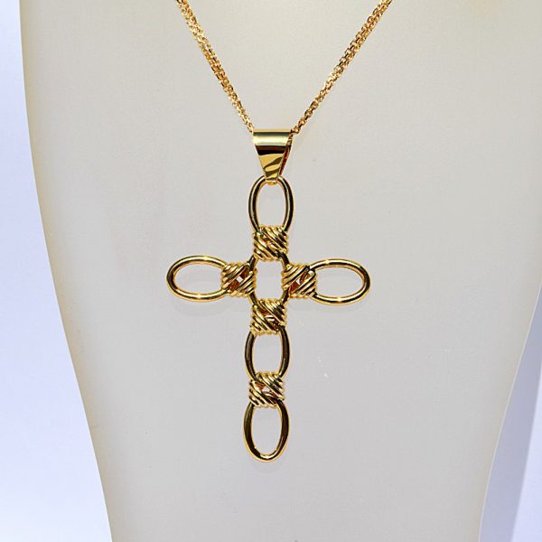Magnifique croix « couture » dimension 5.2*3.7 centimètres avec ses mailles motifs godrons.