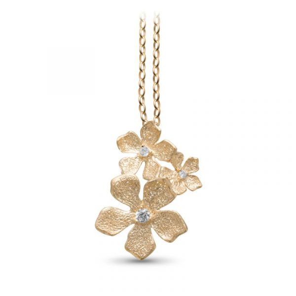 Pendentif motif trio de fleurs de taille différentes en argent, satiné et piqueté.