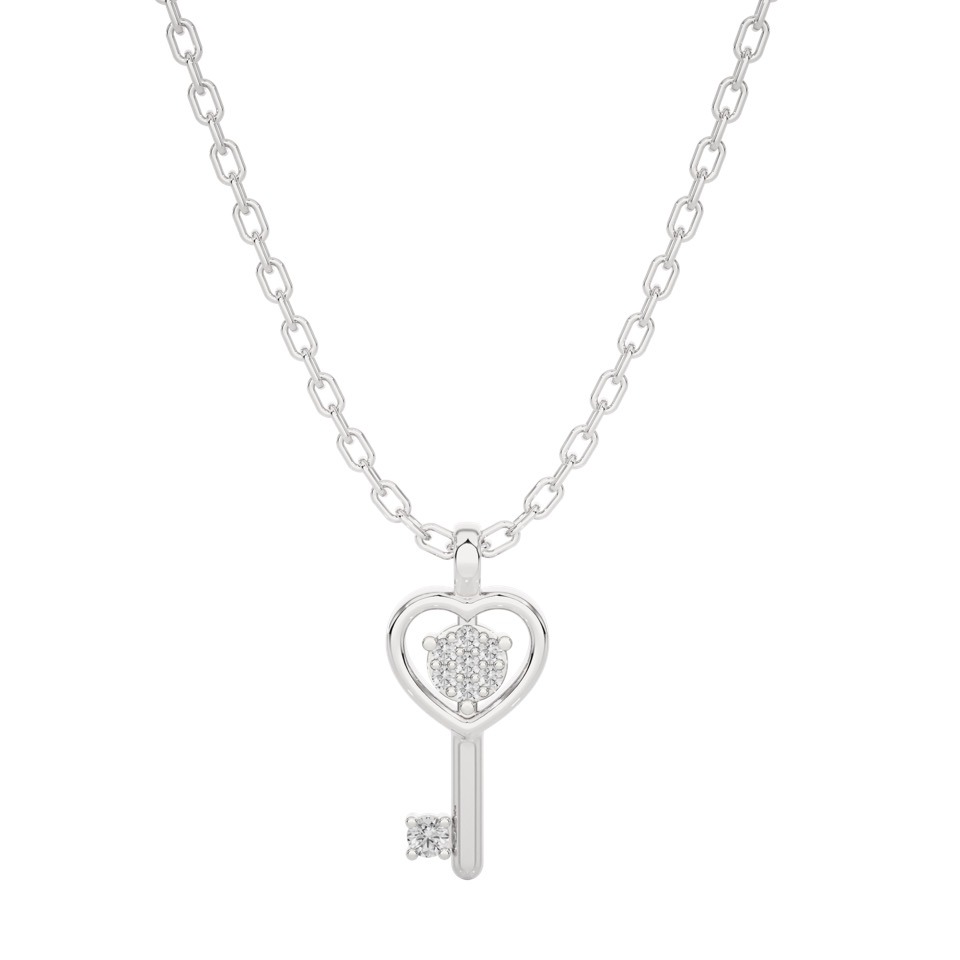 Pendentif clef serti de diamants, suspendu à une chaîne fine et minimaliste.